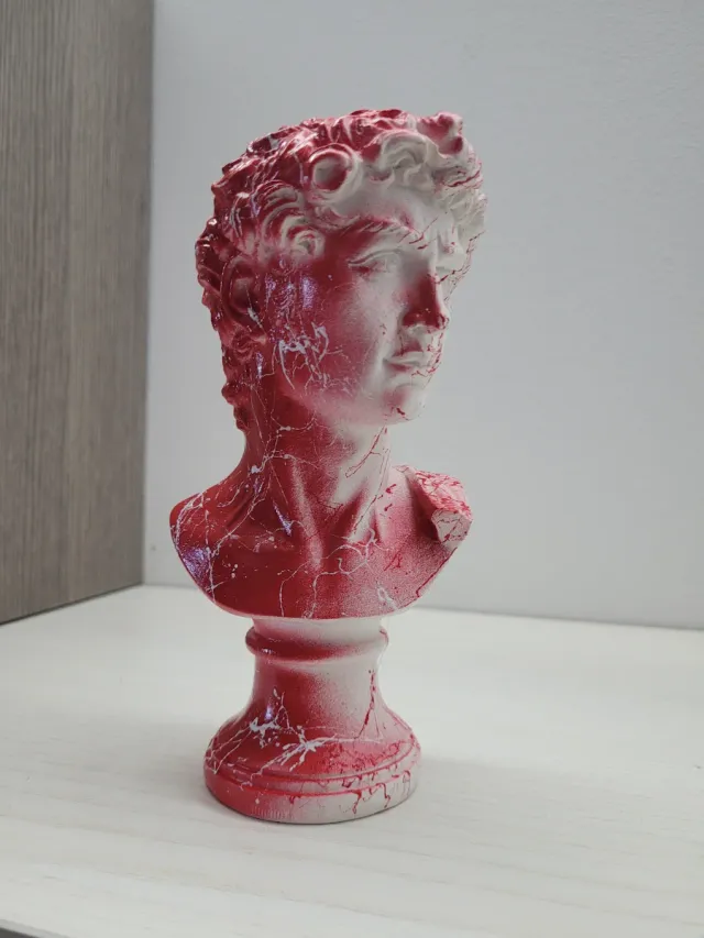 Statua in stile Pop Art ispirata al David di Michelangelo, con una finitura rossa e bianca. DECORATA A MANO. pezzo unico - Design moderno e artistico. - Dettagli in stile Pop Art. -in resina altezza 18cm.