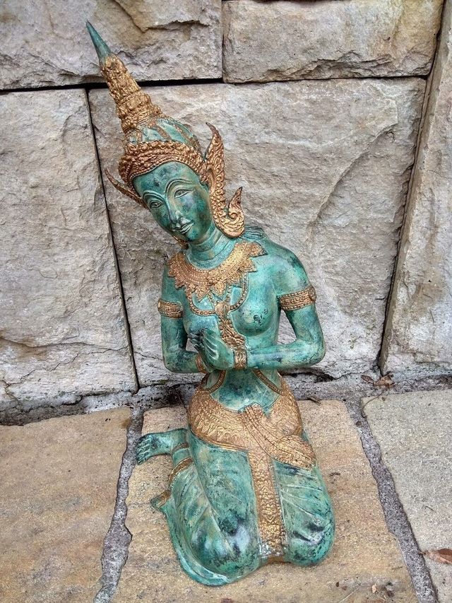 Divinità protettrice e guardiana del tempio. inginocchiata su entrambe le ginocchia con le mani in posizione wai, che prega .