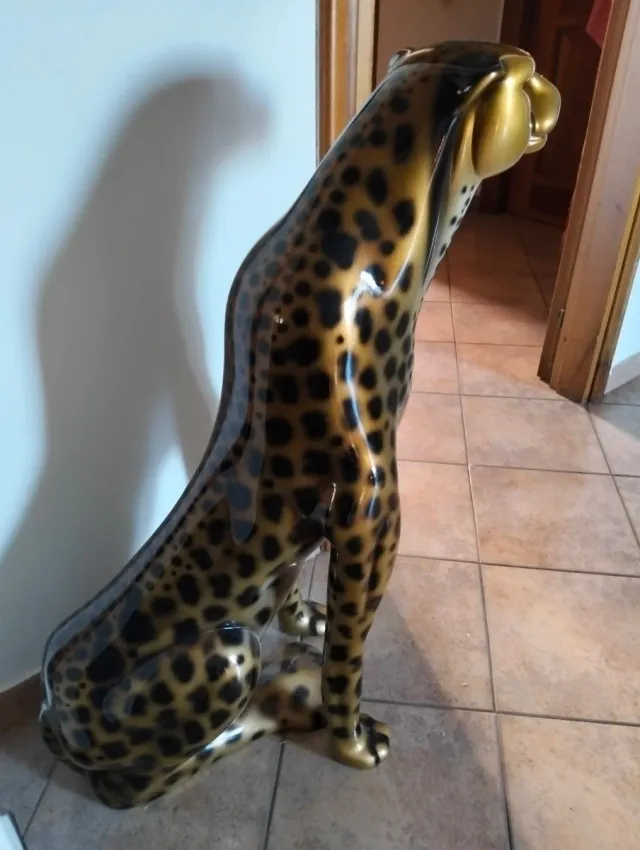 Dettagli del prodottoStatua decorativa a forma di leopardo, ideale per arredare la casa.