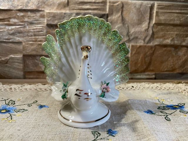 delizioso pavone in porcellana di capodimonte vintage pittura oro ottime condizioni a parte qualche piccola scheggiatura