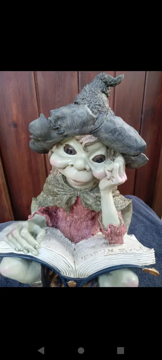 Statua di un pixie originale, un pezzo decorativo unico. - Altezza: 40 cm. - Design dettagliato con cappello e libro.