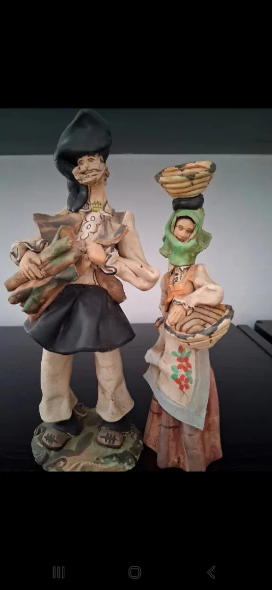 Statua artigianale in ceramica che raffigura una coppia di figure sarde. La coppia viene 15 - Realizzata in ceramica. - Dettagli dipinti a mano. - Base decorata.