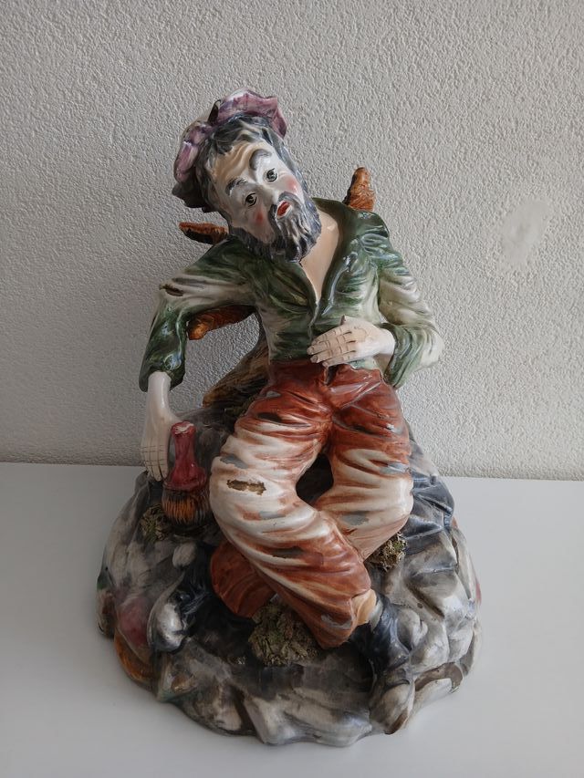 Statua Statuetta Statuina in Ceramica Uomo Ubriaco 30 cm Vintage In buone condizioni come da foto, un dito danneggiato come da foto