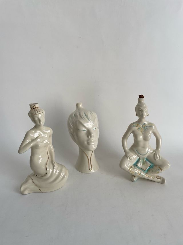 Dettagli del prodottoBellissime bottiglie in ceramica vintage, Ceramiche Porcellane Canova, in tema orientale. Perfette, ne crepature o macchie. Naturalmente non hanno più il liquido all’interno, per me bellissime anche come portacandela, vendo in gruppo o singolarmente: altezza testa 23cm, figure 28 cm circa. Misure del prodotto