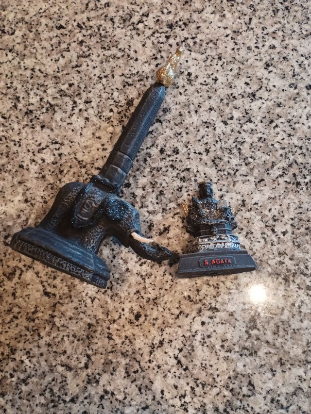 Statuette in pietra lavica,Sm Agata e l'elefante ( a cui manca però una zanna),artigianato locale,in pietra lavica