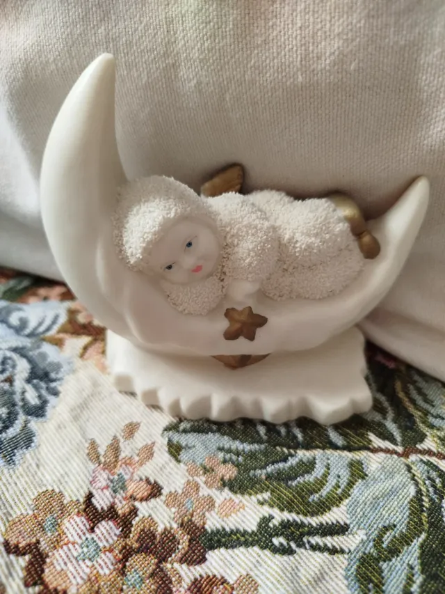 Dettagli del prodottoDeliziosa statuetta di un angioletto che dorme sulla luna.