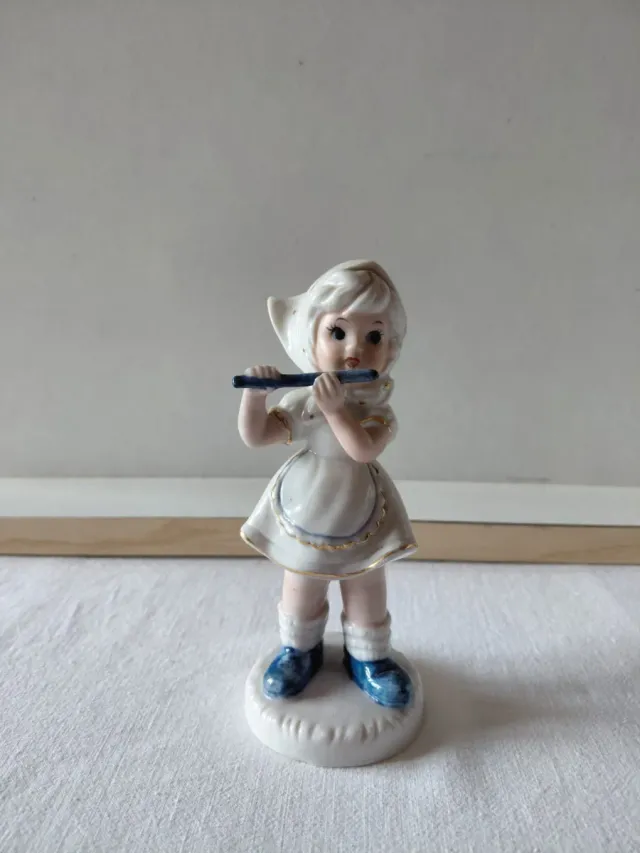Graziosa statuetta in ceramica raffigurante una bambina che suona il flauto. Altezza 14 cm Diametro 6 cm