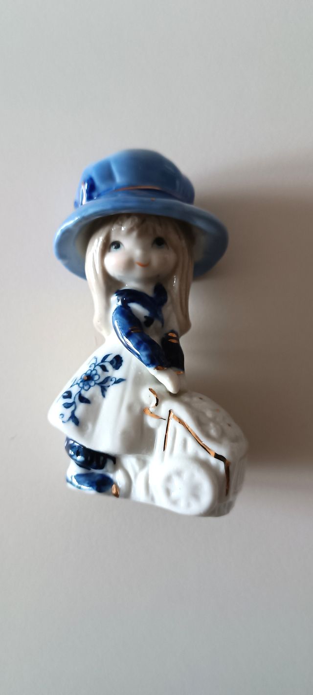 Dettagli del prodottoDeliziosa statuetta in ceramica raffigurante una bambina con un carrello.