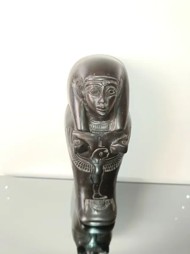Dettagli del prodottoStatuetta Egizia In Pietra Nera Vintage
