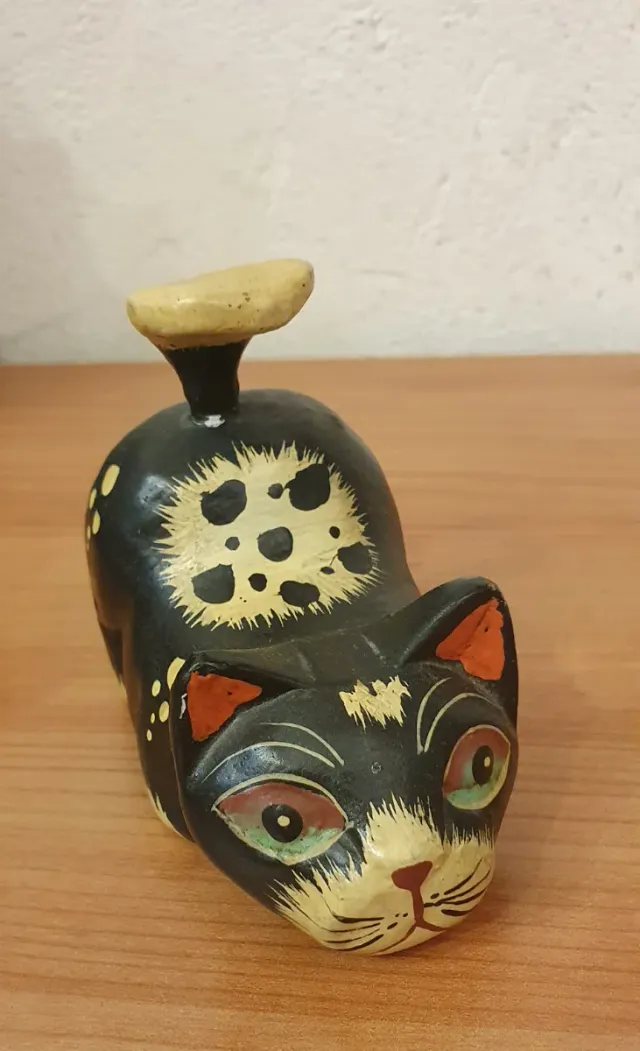 Dettagli del prodottoGraziosa statuetta a forma di gatto, realizzata in legno e dipinta a mano. Un pezzo unico per decorare la tua casa.