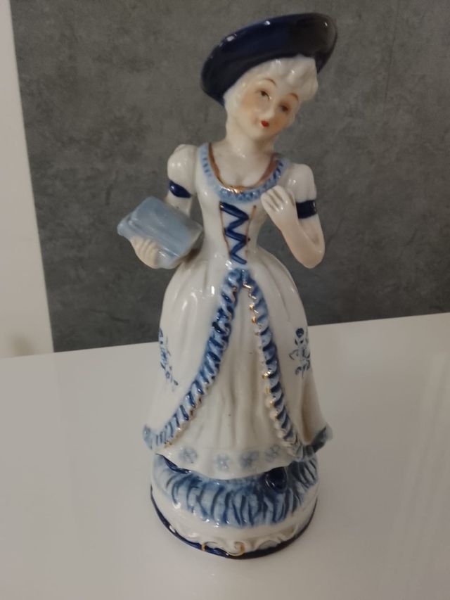 Statuina Statuetta in Porcellana Ceramica 20 cm Donna Nobile Bianco Blu Vintage In perfette condizioni come da foto