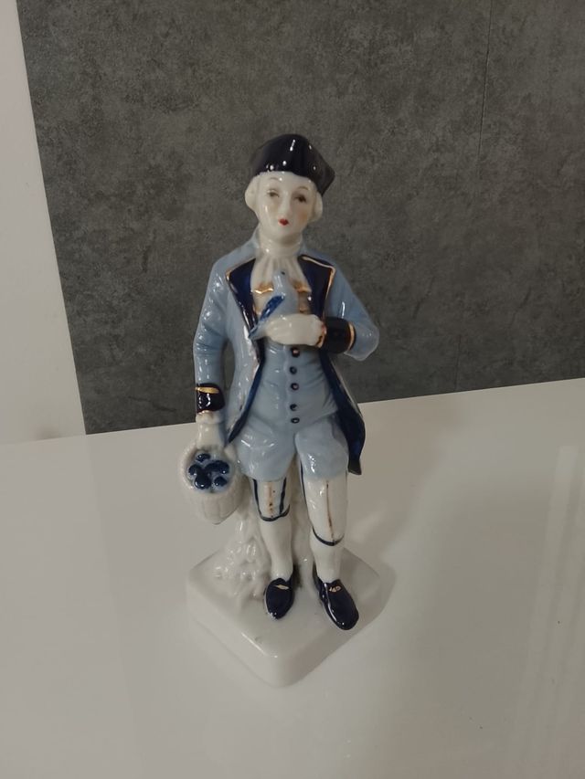 Statuina Statuetta in Porcellana Ceramica 18 cm Uomo Nobile Bianco Blu Vintage In perfette condizioni come da foto