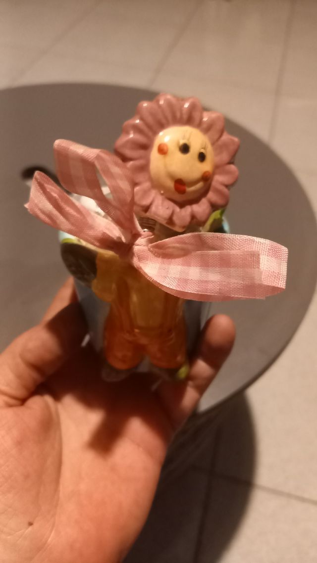 Dettagli del prodottoBellissima statuetta a forma di fiore con un grazioso fiocco rosa. Perfetta come decorazione o piccolo regalo.