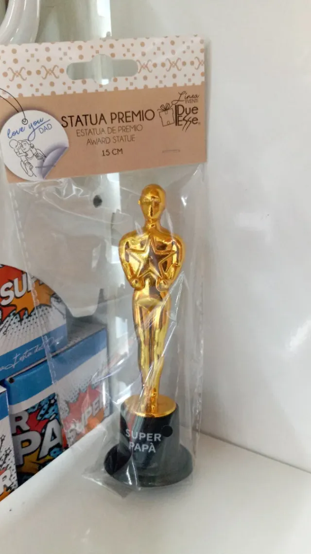 Dettagli del prodottoStatuetta dorata a forma di premio, ideale per celebrare la Festa del Papà.