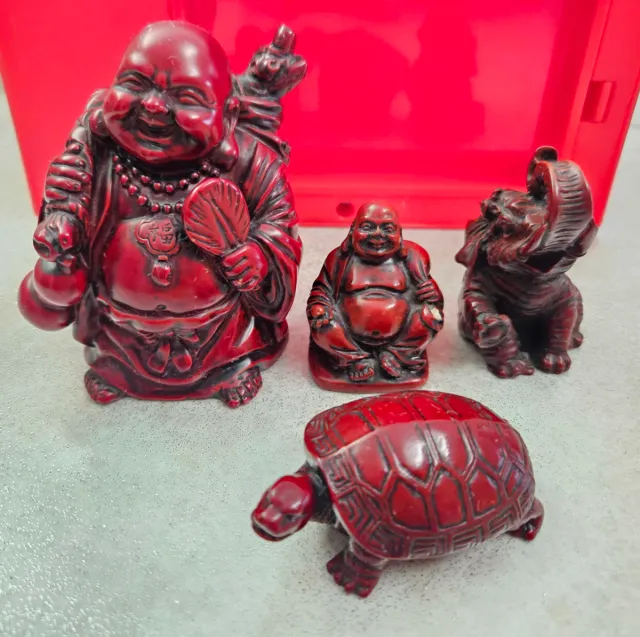 Dettagli del prodottoSet di statuette decorative in stile cinese, realizzate in resina rossa.