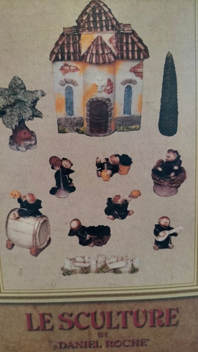 Dettagli del prodottoVendo bellissimo composit formato da statuine, alberi e monastero. Il composit, formato da 10 pezzi in totale, rappresenta la festa del vino nei monasteri. Creazione di Daniel Roche, rivolta ai collezionisti, che intendono avere dei pezzi unici. Il fascino delle sculture che diventa arte da tramandare alle nuove generazioni, rivive in queste statuine dipinte a mano. Sono destinate a chi ama collezionare o regalare oggetti di classe.