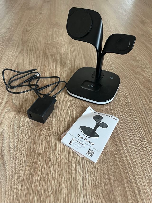 Stazione di Ricarica Wireless 5-in-1 per iPhone, Compatibile con Magsafe, Ricarica Veloce 15W, Dock di Ricarica per Apple Watch e AirPods, Supporto Magnetico con Luce Notturna Regolabile