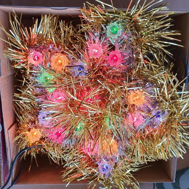 20 luci colorate, bella anche da spenta, impianto a norma con piccole lampadine sostituibili ( e ricambi)
