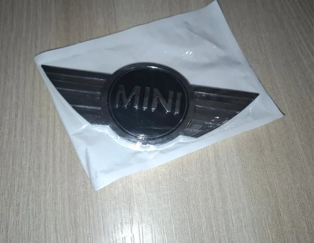 Stemma Originale adesivo con logo MINI. Ovviamente nuovo con adesivo potentissimo di casa madre Mini - Design a forma di ali. - Finitura metallica lucida.