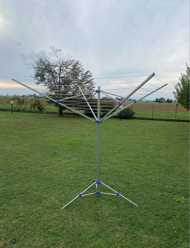 Dettagli del prodottoStendibiancheria in acciaio alto circa 180 cm con possibilità di posizionarlo su piedistallo o fissarlo a terra. Il prodotto è stato usato pochissime volte, quindi è in condizioni perfette.