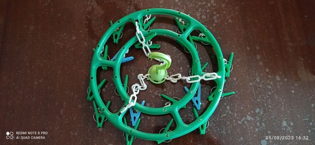 appendere più indumenti, comodo per il campeggio, come mostrato in foto tre pinze sono state sostituite con tre pinze identiche di colore blu.