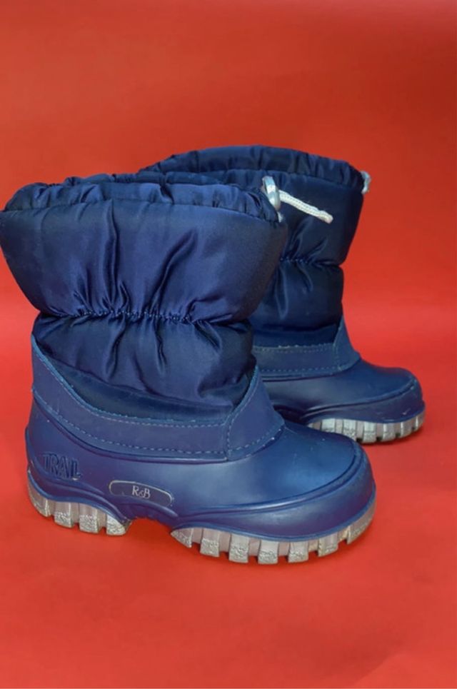 Dettagli del prodottoStivaletti da neve blu, taglia 24. Perfetti per tenere i piedi al caldo durante l'inverno.
