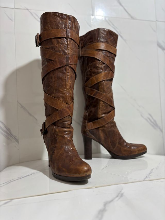 Stivali al ginocchio marroni con cinturini