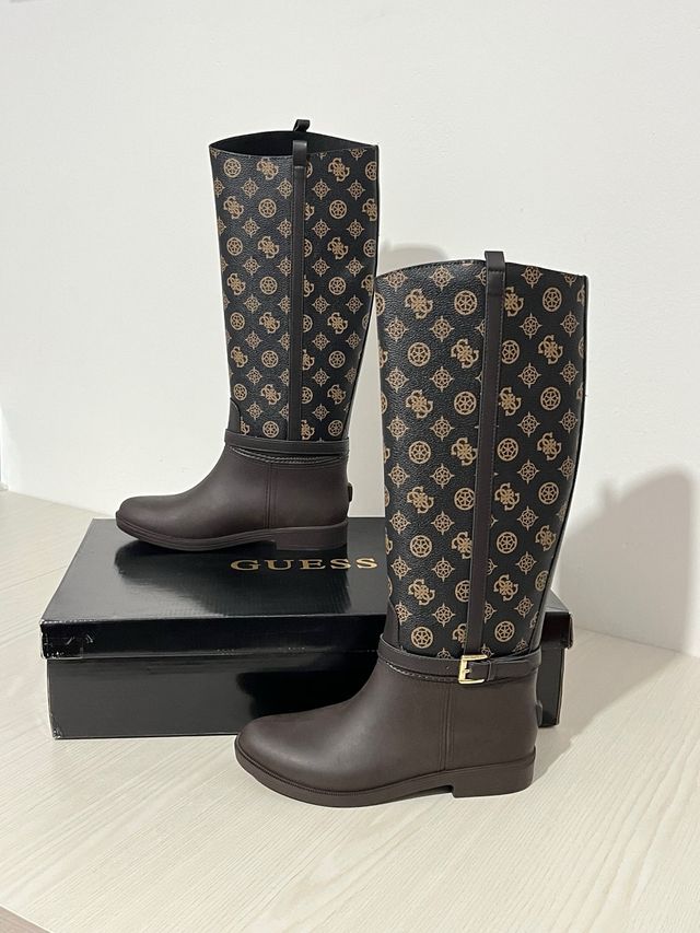 Stivali Guess Tg 37 Logo Monogram Marrone Nero