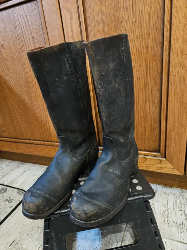 Coppia di stivali militari originali risalenti alla Seconda Guerra Mondiale. - Materiale in pelle robusta. - Design alto fino al ginocchio. - Suola resistente.