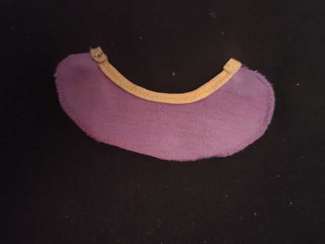 Dettagli del prodottoStola/scialle per Barbie, colore viola e bordo giallo, bottone intatto