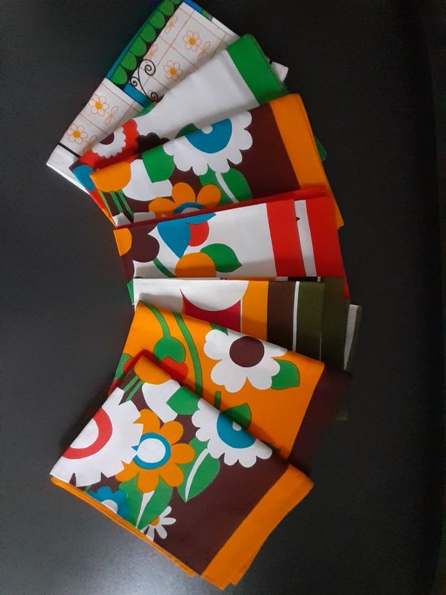 lotto composto da 7 strofinacci da cucina anni '70 nuovi, in cotone misura 67x47 cm