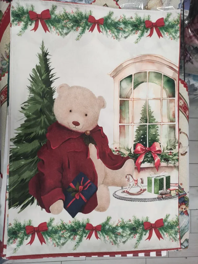 Dettagli del prodottoStrofinaccio con stampa digitale a tema natalizio con orsetti. Misure 50x70cm 100% puro cotone made in Italy.