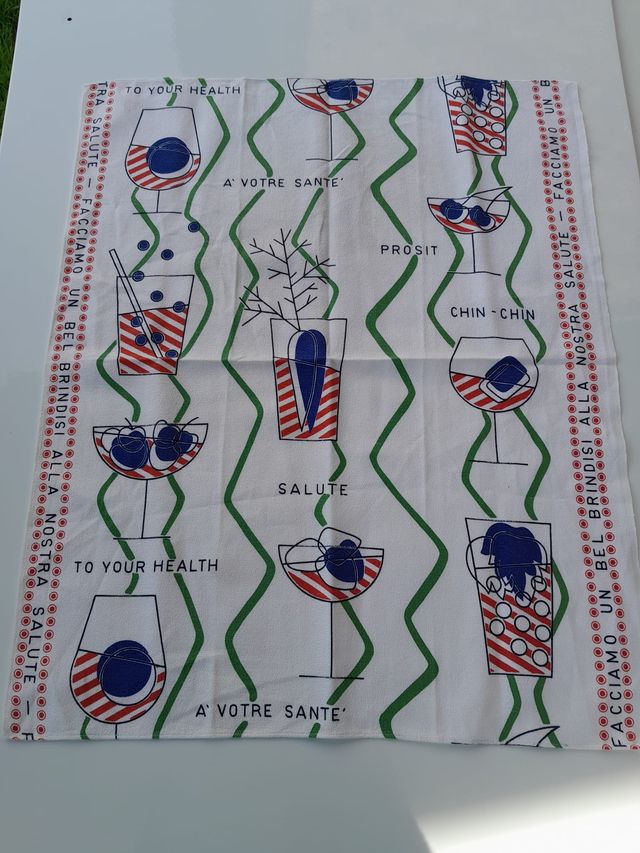 STROFINACCIO ANNI 70 " FACCIAMO UN BEL BRINDISI ALLA NOSTRA SALUTE " MISURE 47 CM X 58 CM