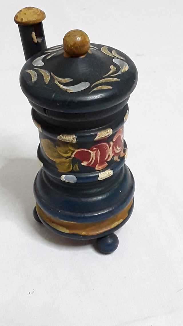 Stufa in legno blu dipinta a mano miniatura x casa delle bambole alta cm. 13