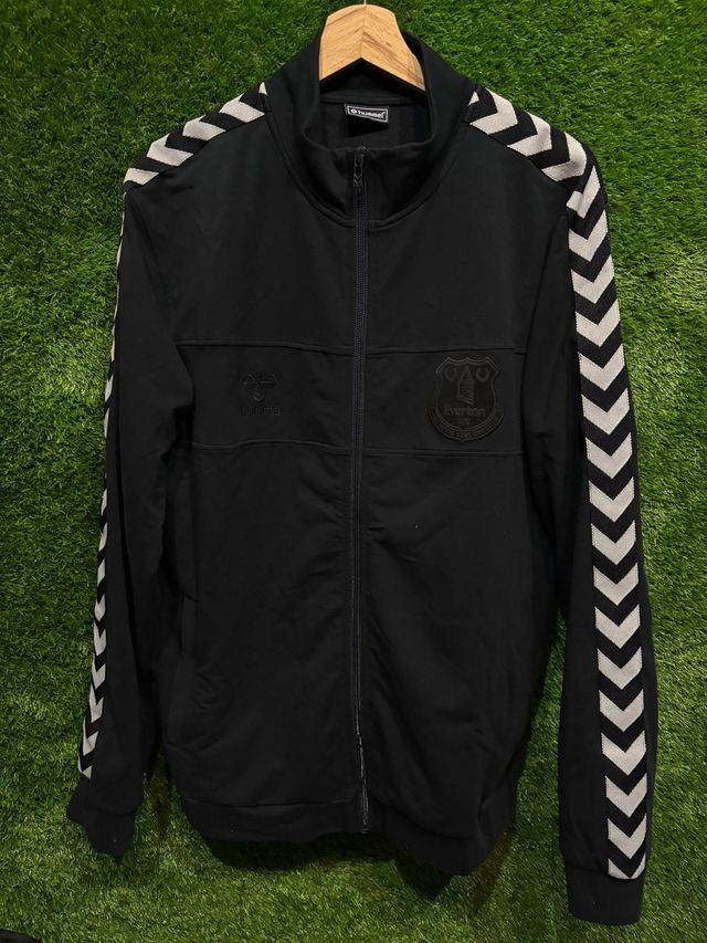 Dettagli del prodottoFelpa dell'Everton. Marca Hummel. Taglia XL europea. Perfetto stato. - Design con cerniera completa. - Righe caratteristiche Hummel sulle maniche. - Logo Hummel ricamato sul petto. La descrizione è stata tradotta automaticamente.