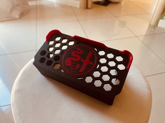 Supporto per cellulare con logo Alfa Romeo. - Design a nido d'ape. - Cornice rossa. - Logo Alfa Romeo rosso. disponibile anche in altri colori