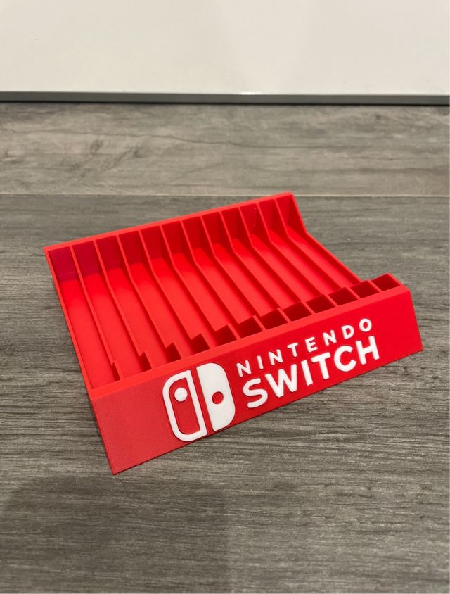 Supporto per Nintendo Switch di colore rosso. - Design a listelli. - Logo Nintendo Switch stampato.