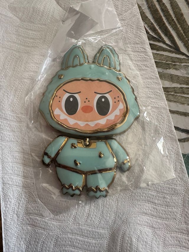 Supporto per telefono a forma di personaggio Labubu. - Design a tema con orecchie da coniglio. - Dettagli color oro lucido.