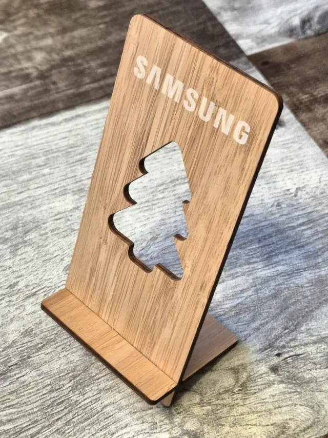 Supporto in legno per telefono con un design a forma di albero di Natale. Perfetto come idea regalo. - Materiale: legno - Design: albero di Natale