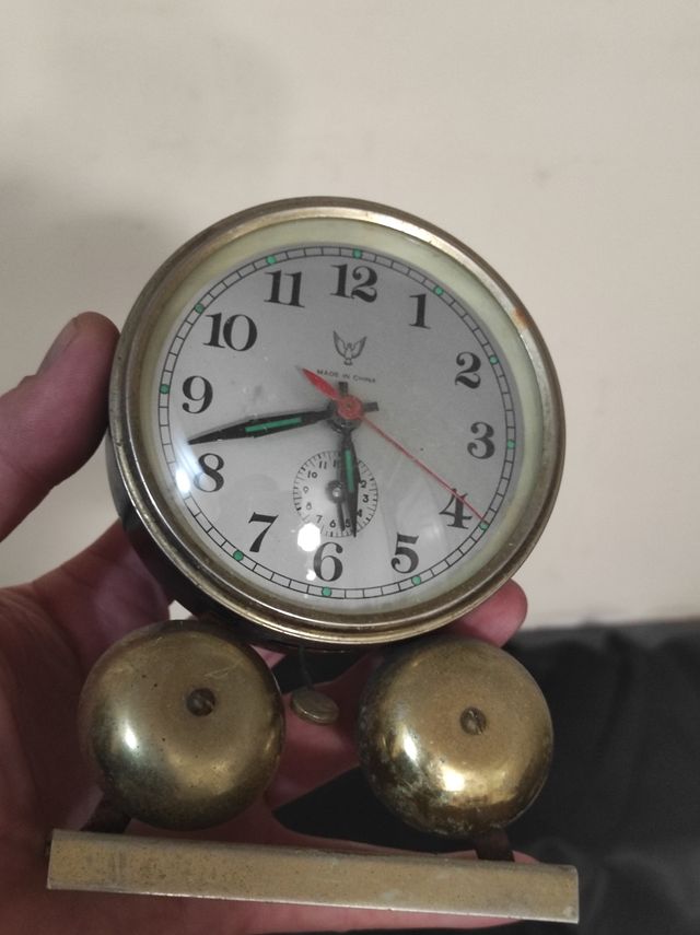 Dettagli del prodottosveglia cinese in buone eccellenti condizioni estetiche con qualche punto di ruggine nel lato attacchi delle campane sul retro.
