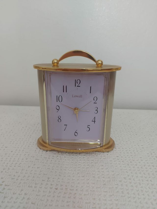 Elegante sveglia in ottone dorato, funzionante , con pila incorporata . Suoneria, con pulsante On/ Off. Made in Italy