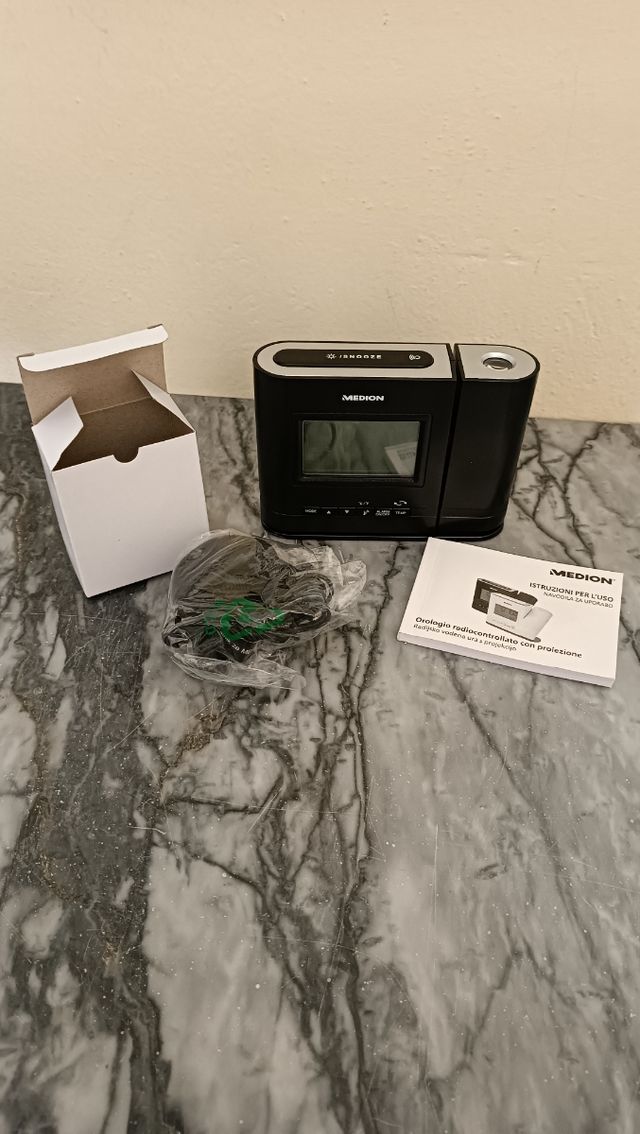 Dettagli del prodottoSveglia radio controllata da comodino con proiettore rotabile per proiettare su muro/soffitto.