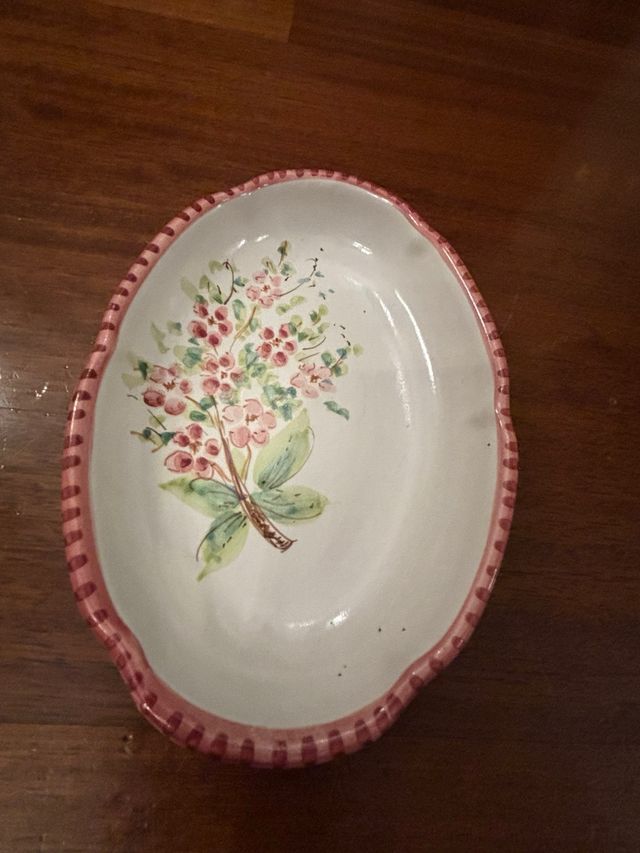Dettagli del prodottoBellissimo svuota tasche in ceramica di Vietri, interamente dipinto a mano con un motivo floreale.