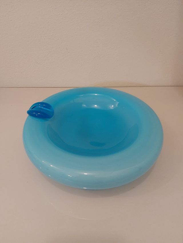 Svuotatasche in vetro di Murano vintage firmato all'interno "Cenedese" vetro incamiciato azzurro senza rotture ne sbeccature diametro 20 cm