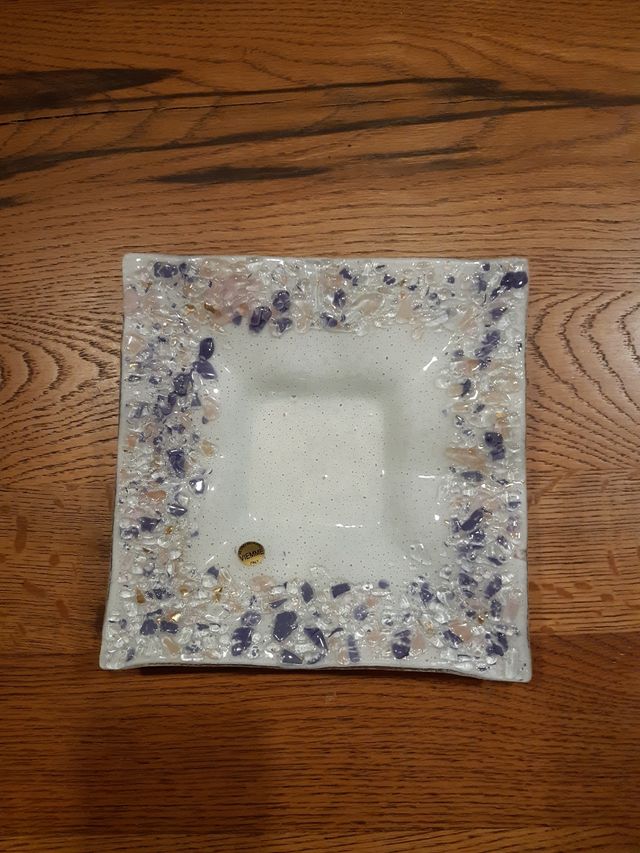 Dettagli del prodottoSvuotatasche in vetro. Misure circa 20×20 cm.prodotto da vetreria di Murano "Viemme". Misure del prodotto