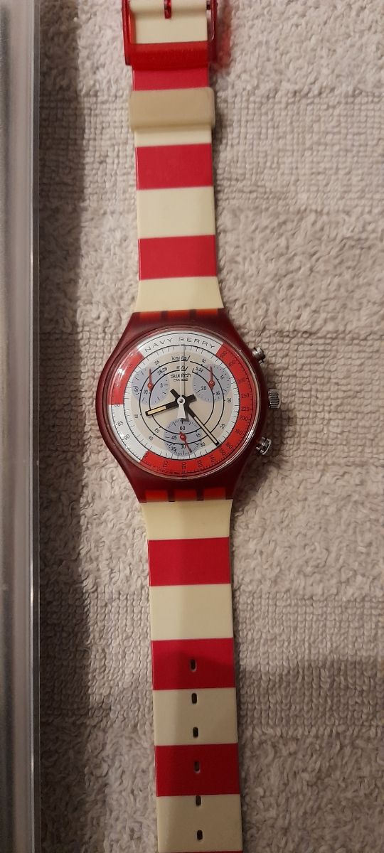 Swatch Chrono Navy Berry, stupendo, nuovo ,tutto originale mai indossato, perfetto con batteria nuova inclusa.