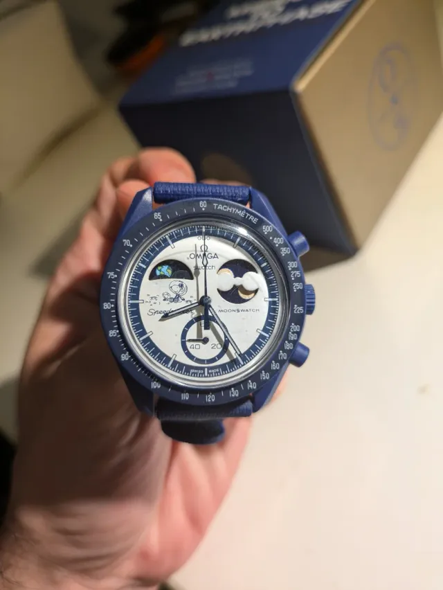 Dettagli del prodottoOrologio Swatch Moonswatch, modello Mission to Earthphase Moonshine Gold. Un design ispirato all'esplorazione dello spazio.