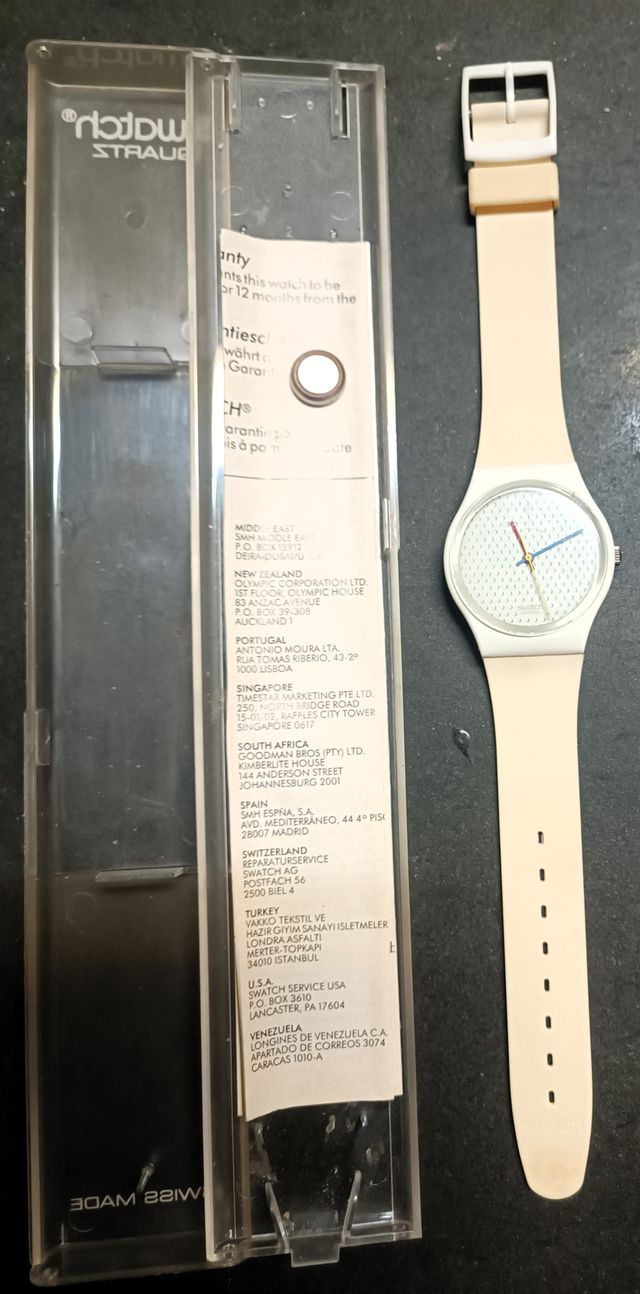 Nuovo - perfettamente funzionante nella sua custodia originale - Display analogico - Resistente all'acqua fino a 3 Bar - Tipo di movimento Quarzo Svizzero - Cassa e Cinturino in Plastica originali.