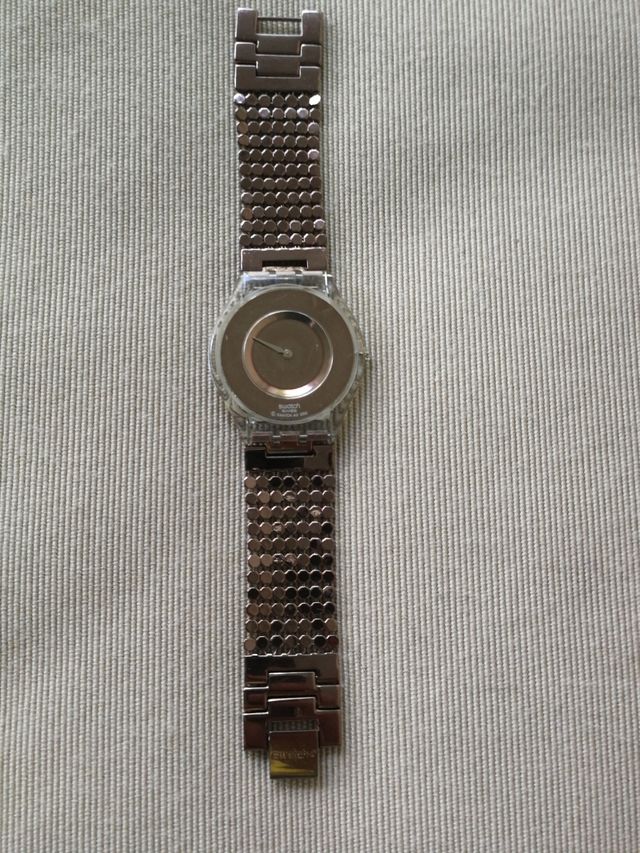 Swatch Skinny vintage, da donna, non funzionante, batteria nuova, appena cambiata, bracciale /cinturino in acciaio. Esterno in ottime condizioni, come da foto.
