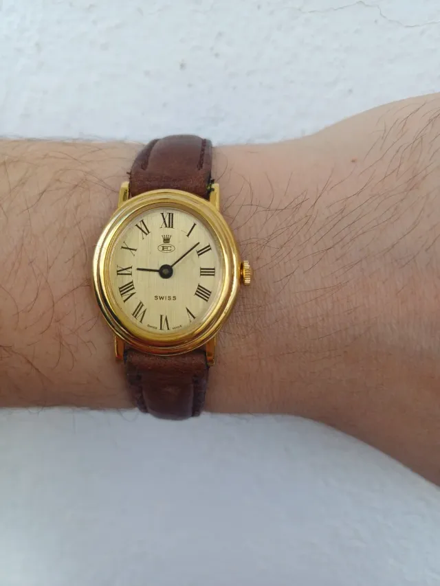 Dettagli del prodottoOrologio vintage da donna, meccanico, a carica manuale, diametro di circa 26 mm esclusa la corona, made in Switzerland, in ottime condizioni generali, funziona perfettamente mantenendo l'ora con precisione, anche se per l'età potrebbe beneficiare di una manutenzione del calibro, cinturino in vero cuoio dell'epoca, plexi e cassa quasi intatti, ottimo stato per un orologio di 50 anni, per persone serie, non perditempo La descrizione è stata tradotta automaticamente.